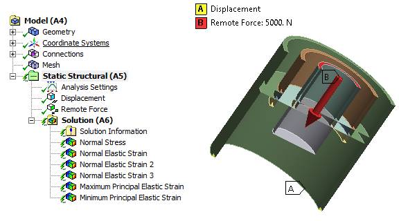 固定外框,并在內(nèi)框施加5000N載荷,求解。